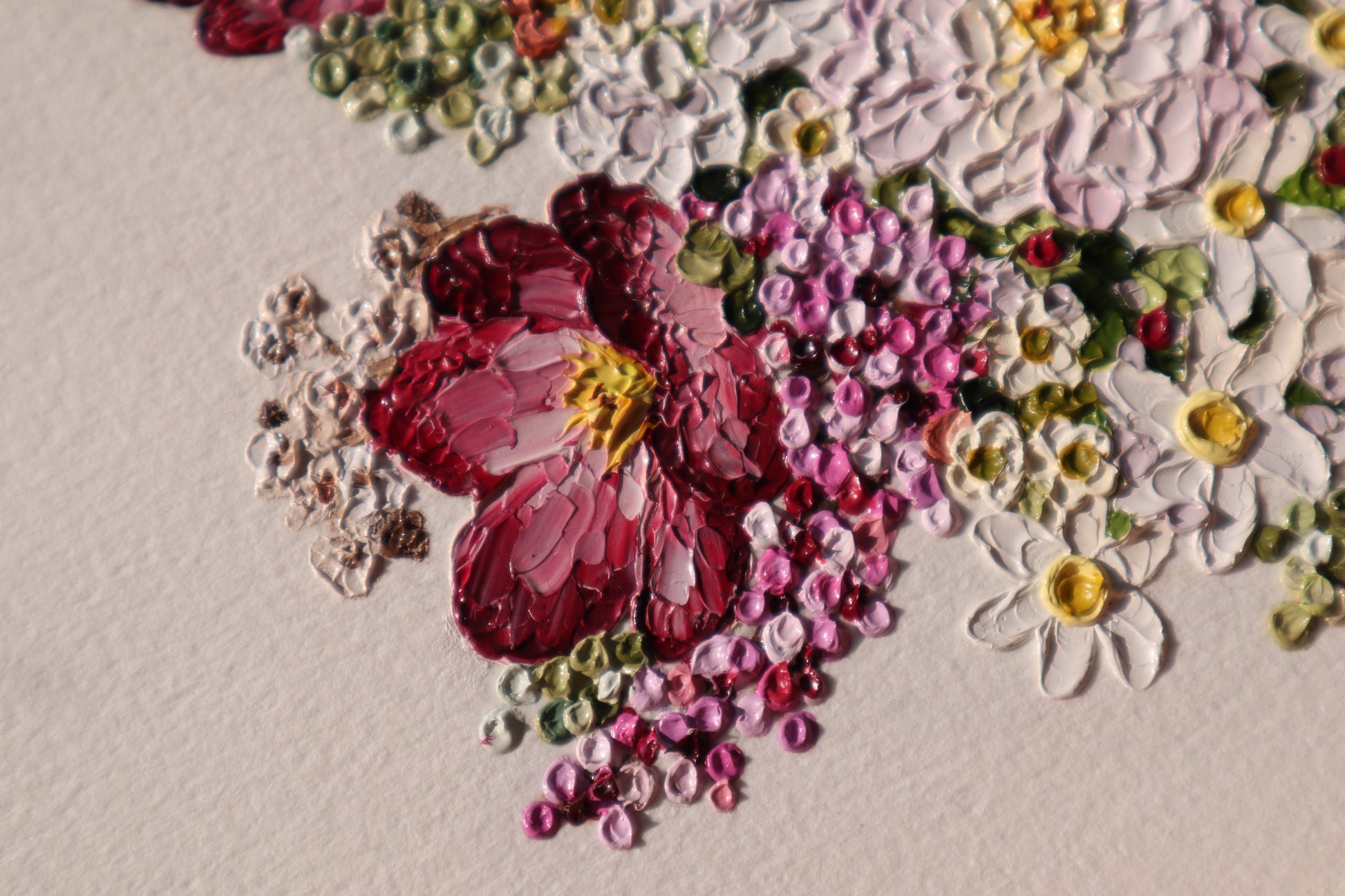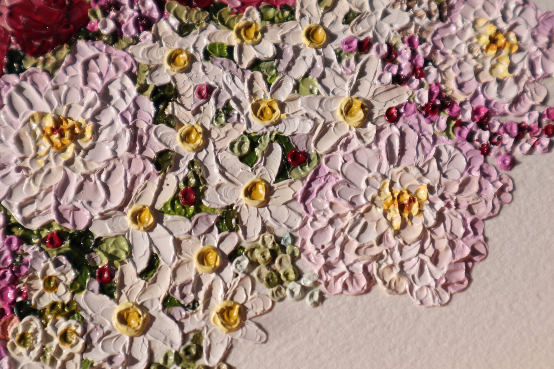 With lovely redbud sprigs, lacy garden roses, and the beloved daffodils, this painting portrays the beauty of rebirth - renewed steps to flourishing life.