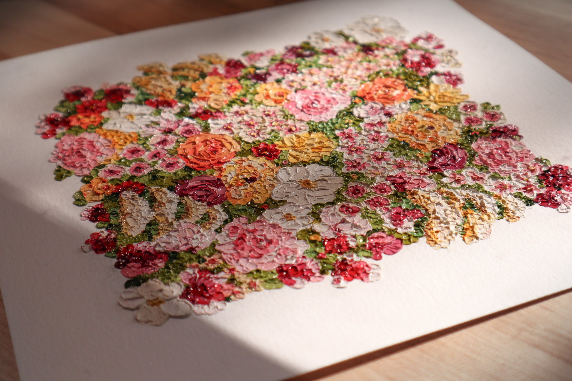 This piece truly has a sunrise glow about it! The soft pinks & warm peachy hues are a true reminder of the abundant summer season & the promise of hope that our stories aren't over yet and new beginnings are always possible.